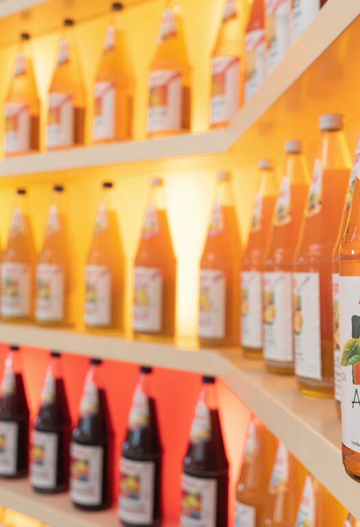 Denn bei uns wird Obst mit großer Sorgfalt verarbeitet. Mit unseren leckeren Säften, erfrischenden Schorlen, aromatischen Apfelweinen und saisonalem Genuss bleiben keine Wünsche offen!