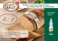 Seit dem 1. Juni 2010 hat ROSBACHER sein Sortiment auf ganz spezielle Weise erweitert: Mit dem „2:1-Aktiv Brot“ der Bäckerei und Konditorei Moos aus Aßlar. Der Name des Brotes ist bereits Programm, denn mit dem wertvollen ROSBACHER Mineralwasser mit dem 2:1-Ideal gebacken, verfügt auch das „2:1-Aktiv Brot“ über das Idealverhältnis von 2:1 von Calcium zu Magnesium.