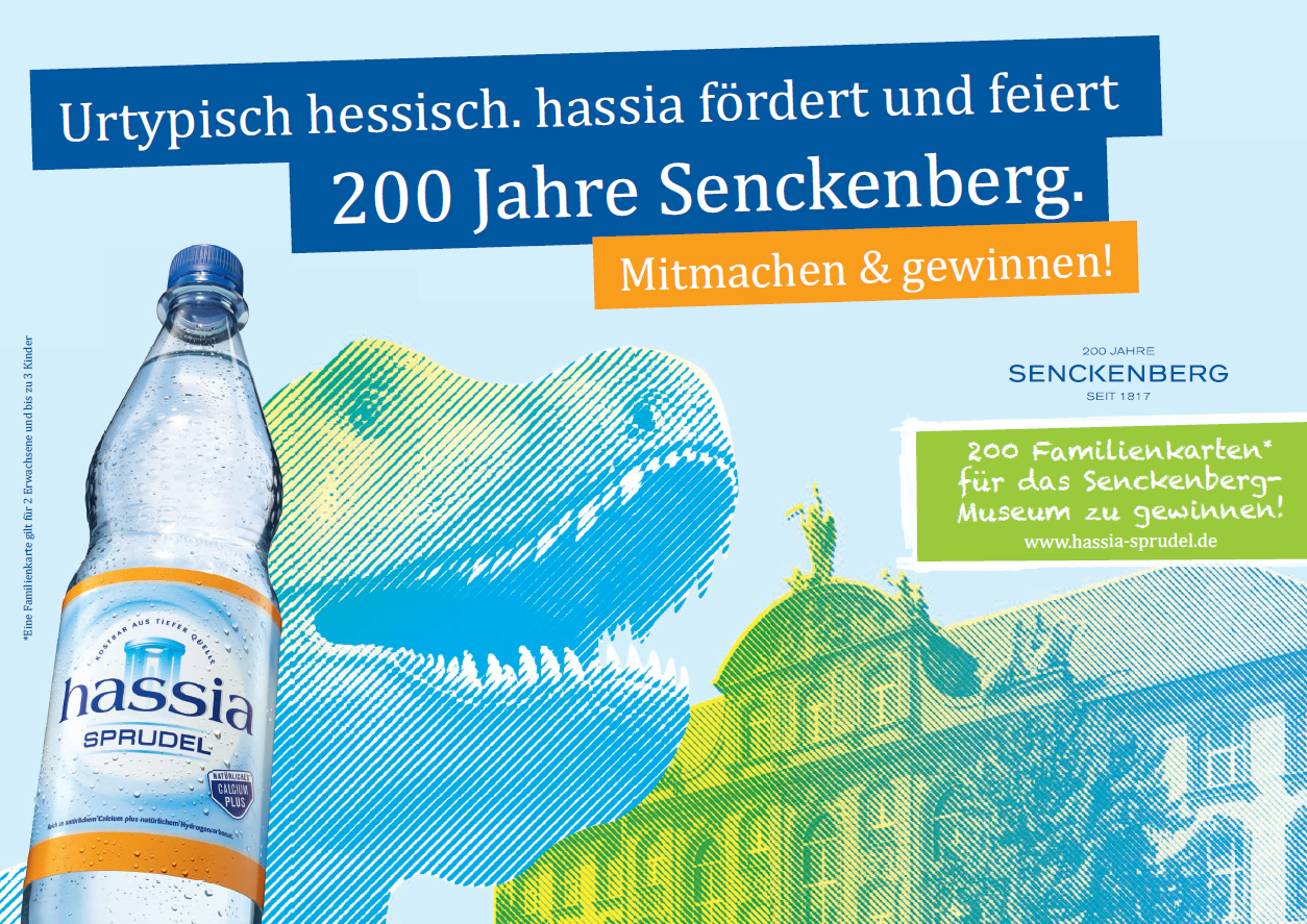 Bad Vilbel, den 02.05.2017 – Die renommierte Senckenberg Gesellschaft für Naturforschung (SGN) feiert in diesem Jahr ihr 200-jähriges Bestehen, und Hassia gratuliert mit zwei Jubiläumsaktionen für einen Tag mit der Familie im beliebten Frankfurter Senckenberg-Museum.