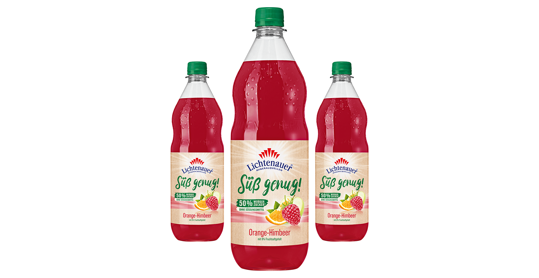 Die Lichtenauer Mineralquellen bringen als erster regionaler Mineralbrunnen im Osten eine zuckerreduzierte, kalorienarme Limonade ins Getränkeregal: Lichtenauer „Süß genug!“ in der Geschmacksrichtung Orange-Himbeer enthält 50 Prozent weniger Zucker als herkömmliche Lichtenauer-Limonaden und kommt dabei ohne weiteren Zusatz künstlicher Süßungsmittel aus. Seinen fruchtigen Geschmack erhält das kalorienarme und kohlensäurehaltige Erfrischungsgetränk durch 8 Prozent Fruchtsaftgehalt. Das Erfrischungsgetränk ist zudem vegan und enthält keinerlei künstliche Füll- oder Farbstoffe. Seine Basis ist natürliches, prickelndes Lichtenauer Mineralwasser. Das neue Produkt aus dem Hause Lichtenauer ist ab April im Handel erhältlich und wird im 12 x 1,0-Liter PET-Mehrweg-Gebinde angeboten.