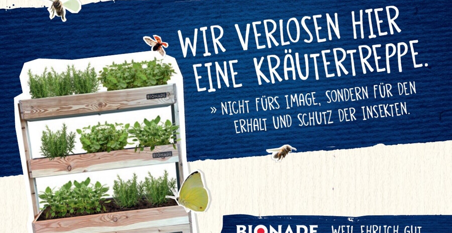 BIONADE liebt Kräuter. Deshalb stecken viele von ihnen in der herrlich erfrischenden Sorte BIONADE Kräuter. Aber auch für den Artenschutz ist ein Kraut gewachsen: BIONADE verlost jetzt bei einer Handelsaktion in allen national beteiligten Märkten jeweils eine Kräutertreppe.