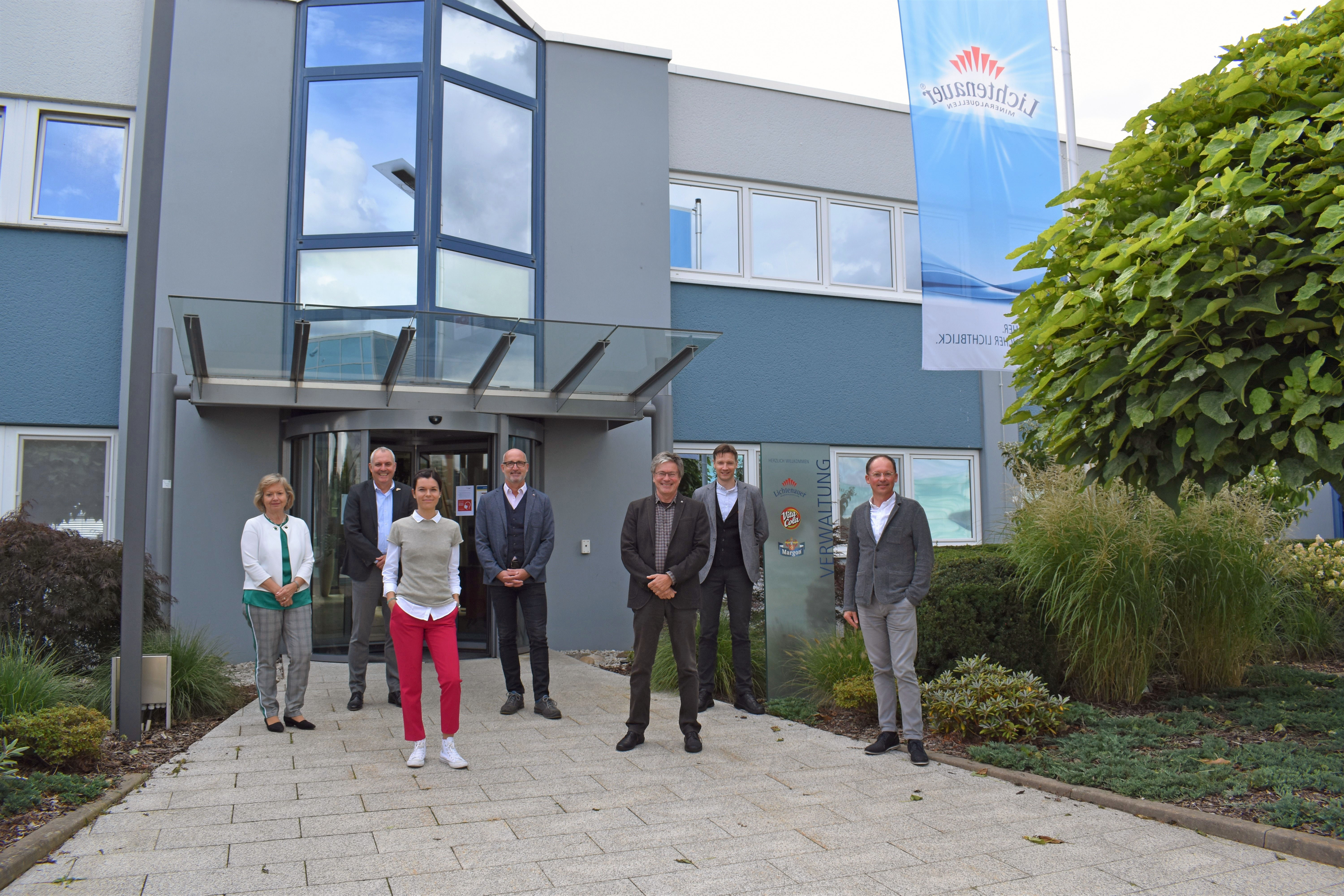 Bildunterschrift: Andrea Latendorf (Verwaltungsleiterin Lichtenauer Mineralquellen), Paul K. Korn (Geschäftsführer Lichtenauer Mineralquellen), Laura von Flemming (Nachhaltigkeitsbeauftragte HassiaGruppe), Uwe Grohmann (Betriebsleiter Technik Lichtenauer Mineralquellen), Oliver Brendle (Auditleiter TÜV Rheinland Cert), Ralf Radtke (Auditor TÜV Rheinland Cert), Lutz Am Ende (Betriebsleiter Nachhaltigkeit Lichtenauer Mineralquellen) (v.l.n.r.)