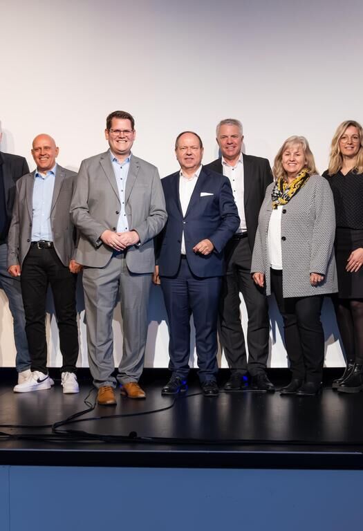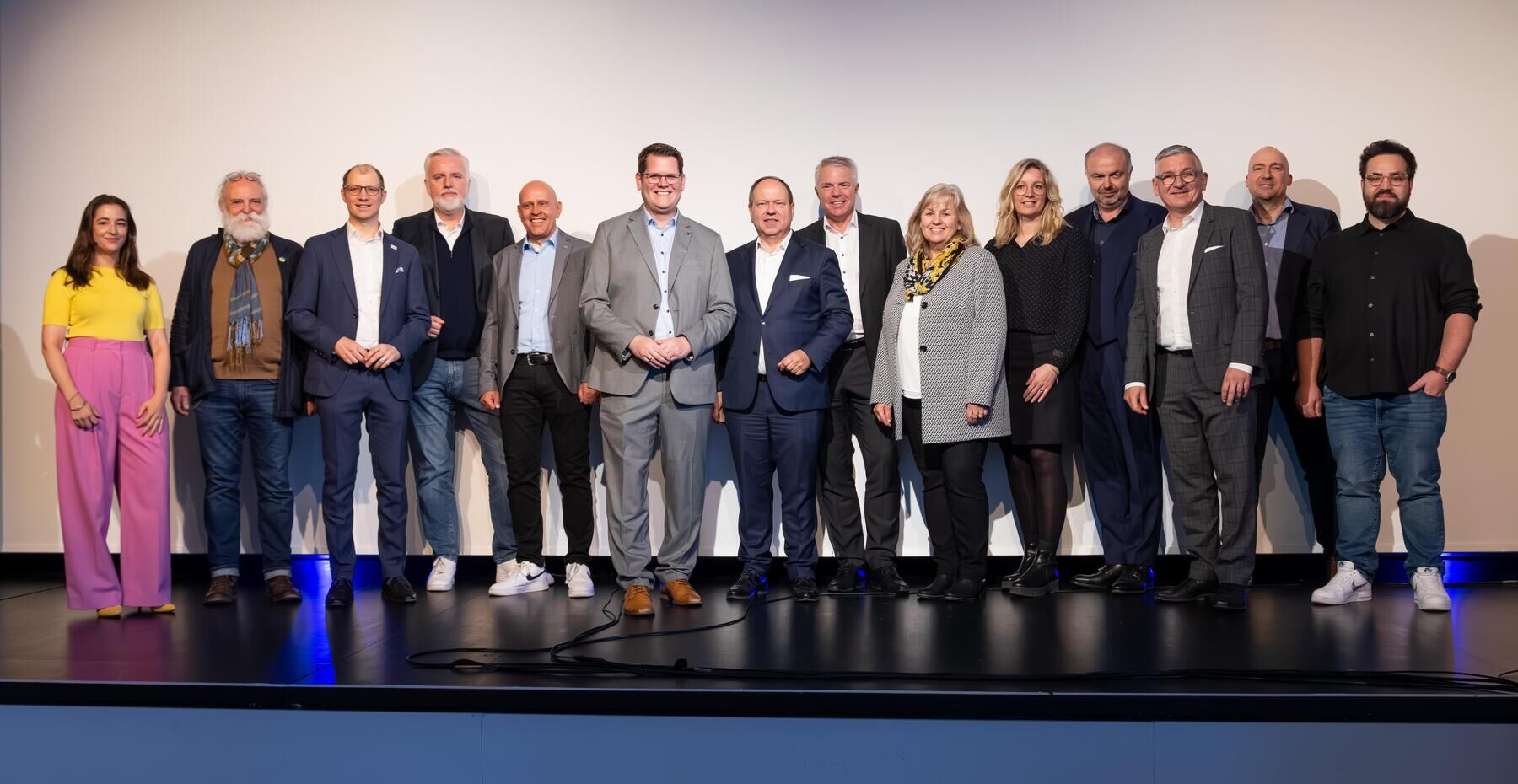 „Alle zusammen für Bad Vilbel, alle zusammen für den Hessentag!“ So begrüßten Bad Vilbels Bürgermeister Sebastian Wysocki (6. v. l.) und der Hessentagsbeauftragte der Stadt Bad Vilbel, Claus-Günther Kunzmann (2. v. l.), die Hauptsponsoren im Bad Vilbeler Kurhaus. „Dank Ihnen wird der Hessentag ein Highlight nicht nur für Bad Vilbel, sondern über ganz Hessen hinaus.“