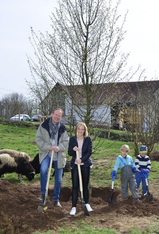 Bei der Schilasmühle pflanzten Bernhard Zander und Corinna Fuchs heute als Startschuss in die Saison zwei der neuen Bäume: eine Sommerlinde, unter deren Schattendach man sich später gut treffen kann, und eine Hainbuche, die zum Kletterbaum heranwachsen soll. Weitere acht Bäume stärken die Artenvielfalt am Urselbach. Hier werden in Zukunft auch die Kinder des Naturkindergartens spielen, der nach der geplanten Sanierung in die historische Mühle einzieht. „Wer unsere Naturfarm näher kennenlernen will, ist herzlich zum Frühlingsfest am Sonntag, 31. März eingeladen. Zwischen 12 und 16 Uhr kann man unsere Tiere besuchen, basteln, Getreide mahlen und vieles andere“, so Bernhard Zander. Auch unter der Woche bietet der Verein nun regelmäßig offene Naturnachmittage an. An „Mithelf-Sonntagen“ sind anpackende freiwillige Helfer willkommen, um das Areal weiterzuentwickeln.