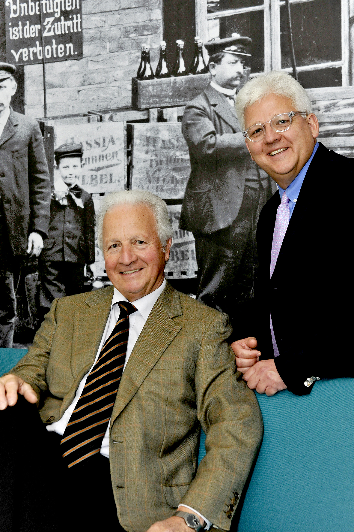 Günter Hinkel (4. Generation) und Dirk Hinkel (5. Generation) vor historischem Motiv