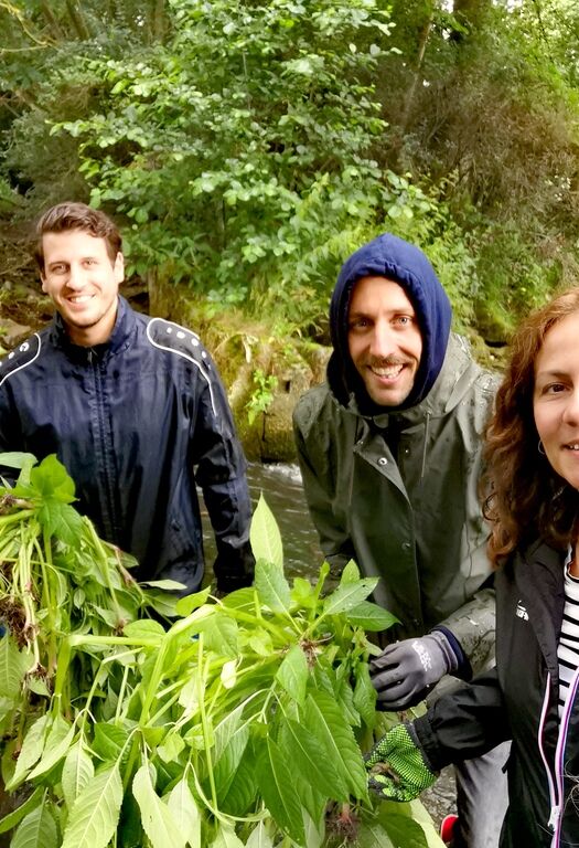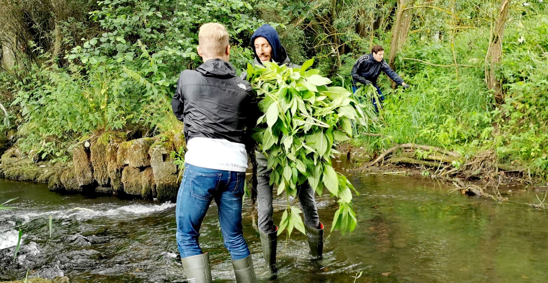 Am Uferbereich der Streu wucherte es schon wieder, das Indische Springkraut. Zeit also für den BIONADE Aktionstag, der auch in diesem Sommer nicht ins Wasser fallen sollte.