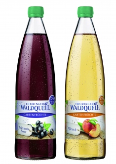 Die „Thüringer Waldquell Gartenfrüchte“ sind kohlensäurehaltige Erfrischungsgetränke auf der Basis von natürlichem Mineralwasser mit einem hohen Fruchtgehalt von 12 Prozent (Schwarze Johannisbeere) und 10 Prozent (Pfirsich). Sie enthalten keine künstlichen Farbstoffe und eignen sich für eine vegane Ernährungsweise. Ein modernes Gebinde unterstreicht die Hochwertigkeit der Produkte: Als erste Getränke von Thüringer Waldquell kommen die „Thüringer Waldquell Gartenfrüchte“ im 6 x 0,75 l Glas-Mehrweg-Individualkasten in den Handel.