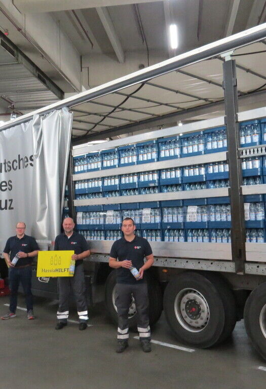 Heute steht ein Lkw des Deutschen Roten Kreuzes Hessen in der Hassia Logistikhalle, um einen Teil der insgesamt zugesagten 86.400 Liter Mineralwasser abzuholen. Norbert Södler, Präsident des DRK-Landesverbandes Hessen e.V. bedankt sich bei Hassia Mineralquellen: „In dieser außergewöhnlichen Pandemielage leisten unsere Rotkreuzlerinnen und Rotkreuzler seit Monaten Außergewöhnliches. Sei es in den Alten- und Pflegeheimen, im Rettungsdienst oder in den vielen anderen Arbeitsbereichen des Roten Kreuzes in Hessen. Wir sind der Firma Hassia Mineralquellen sehr dankbar für die großzügige Spende ihres hessischen Wassers für unsere hessischen Helferinnen und Helfer in den DRK-Kreisverbänden und Schwesternschaften!“