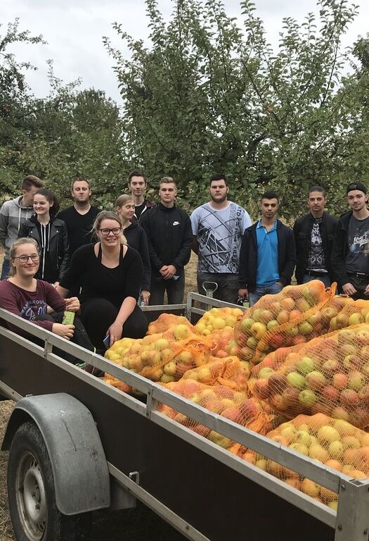 Am 13. September war es wieder soweit: die Hassia Azubis im ersten Lehrjahr trafen sich, um zusammen einen Apfelsaft zu keltern. 13 Auszubildende aus allen Ausbildungsberufen waren dabei. Alle machen den gleichen Job und lernen sich dadurch auch besser kennen. Dabei sollen die jungen Leute von der Apfelernte bis zur Abfüllung eines Apfelsaftes alle Produktionsstufen selber kennen lernen und durchführen. Auf einer Streuobstwiese in Rosbach wurden 520 kg Äpfel zunächst gelesen/geerntet und in Säcke verpackt. Hieraus wurden später in der Kelterei von Thomas Böhm über 300 Liter Apfelsaft gekeltert und abgefüllt.