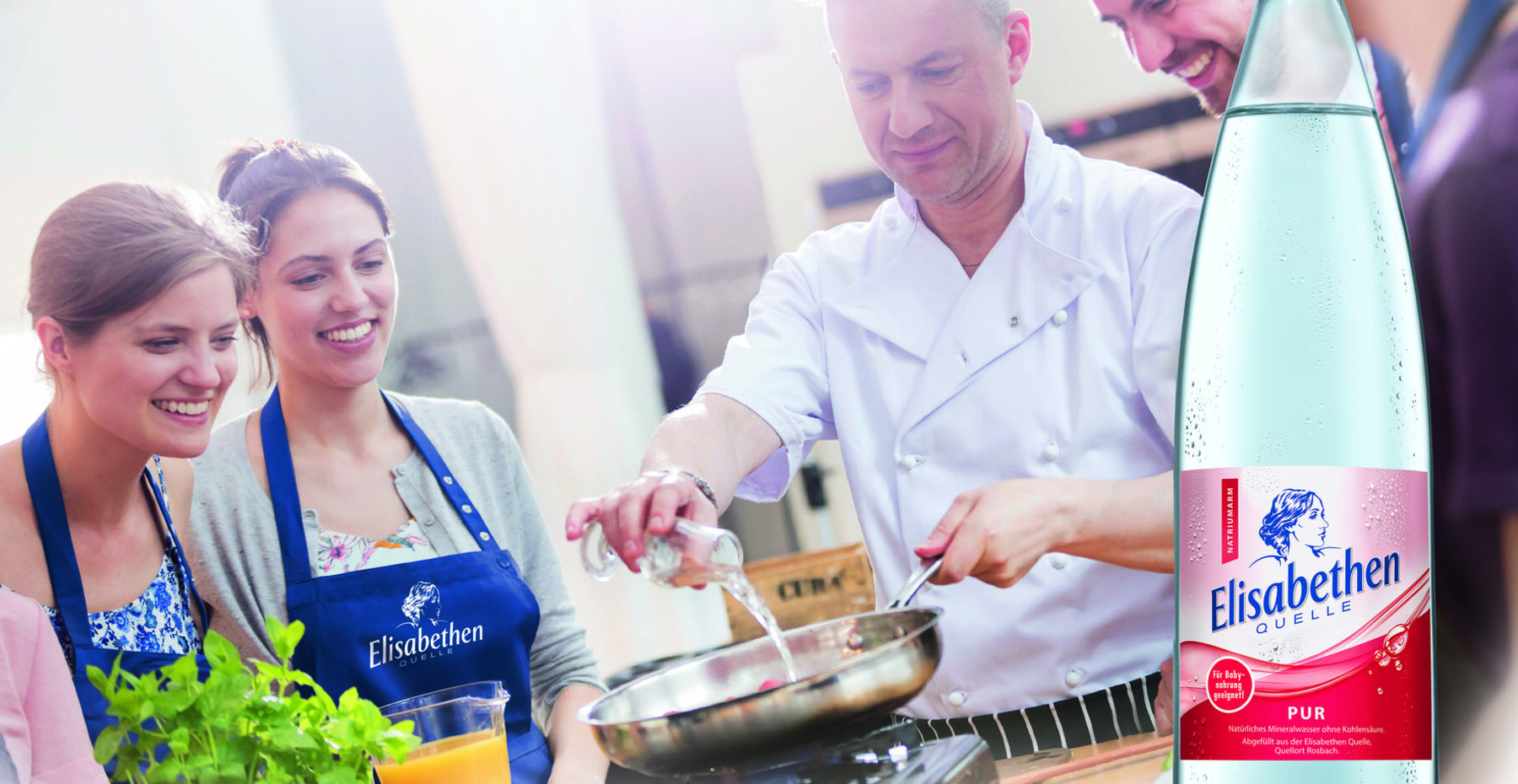 Unter der professionellen und individuellen Anleitung von Profi-Köchen, bereiten die Gewinner und ihre Begleitung am 10. März 2018 ein mehrgängiges Gourmet-Dinner zu. Zwischendurch und beim anschließenden gemeinsamen Genießen kommt natürlich Elisabethen Quelle ins Glas.