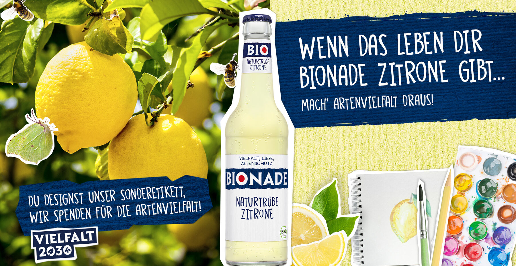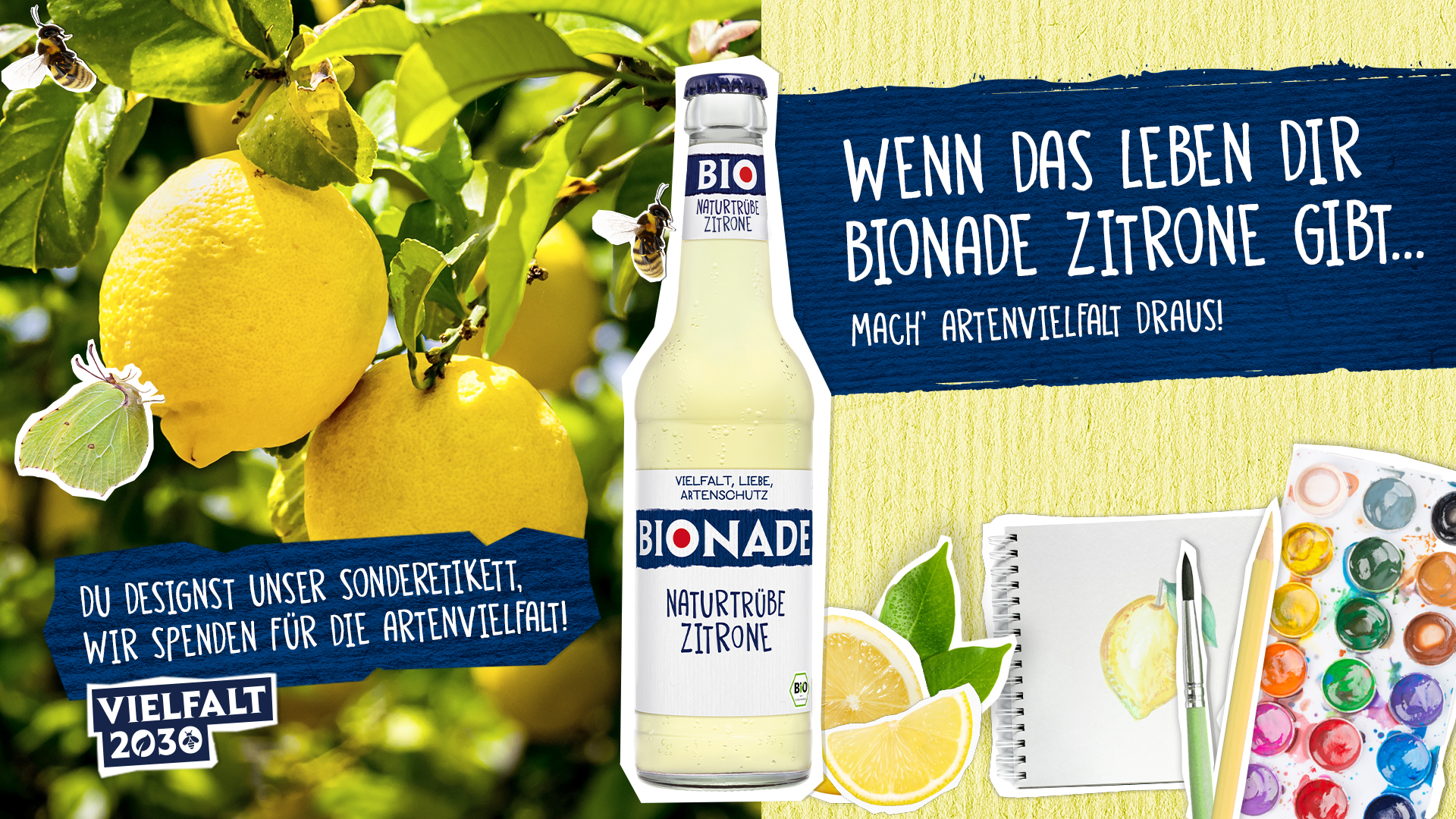 Ab sofort startet für die sensationell fruchtig-erfrischende BIONADE Naturtrübe Zitrone ein Designwettbewerb. Die kommende Sonderedition soll ein farbenfrohes Etikett schmücken, das Lust auf die spritzige Natürlichkeit von BIONADE Naturtrübe Zitrone macht und die Artenvielfalt im Blick hat.