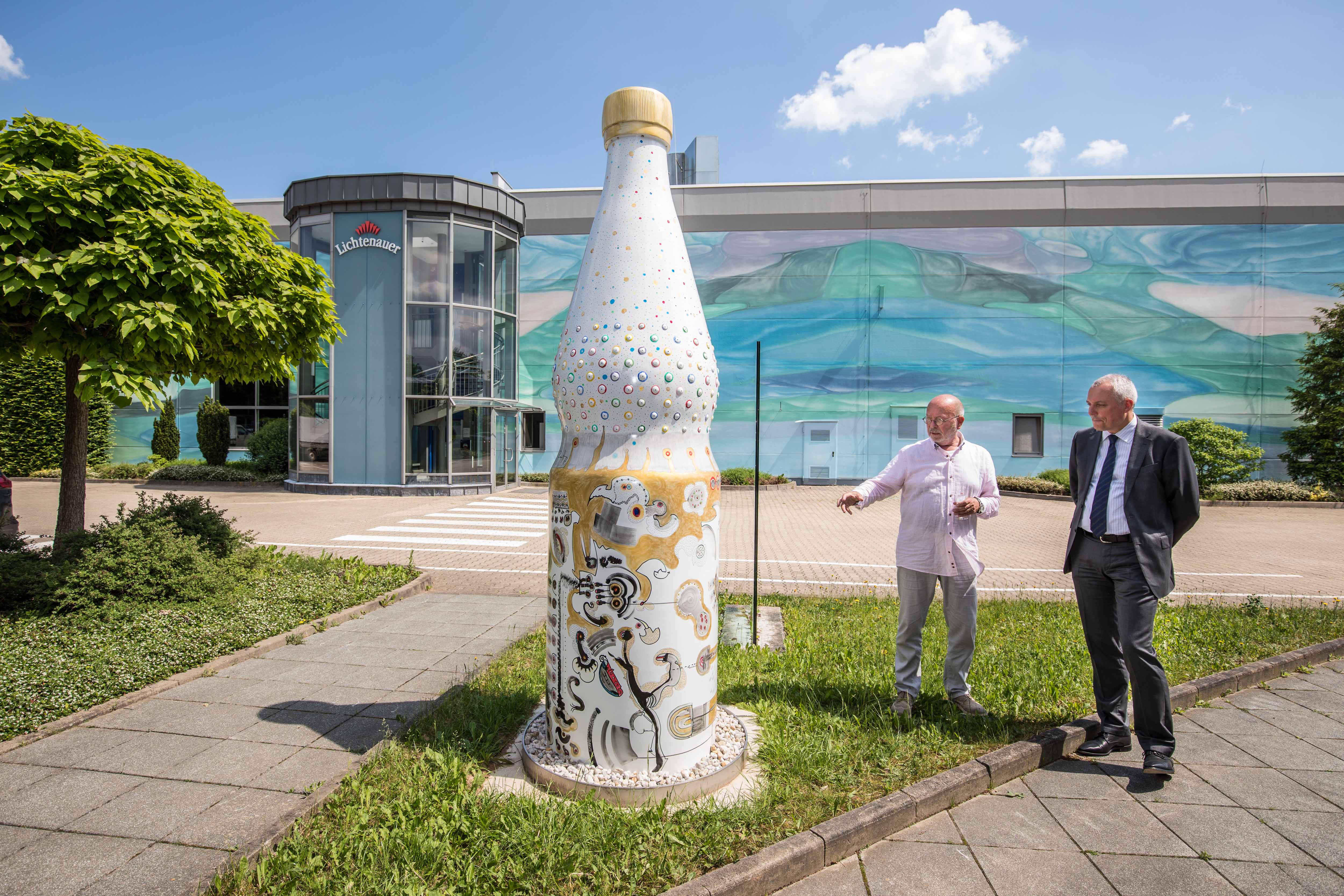 Am Freitag, 25. Mai 2018, war es soweit: Nach einigen Monaten kreativen und künstlerischen Schaffens konnten die beiden Chemnitzer Künstler Gregor-Torsten Kozik und Thomas Ranft ihre Kunstobjekte in Form von zwei jeweils drei Meter hohen Mineralwasserflaschen auf dem Gelände der Lichtenauer Mineralquellen den ersten Gästen vorstellen und gemeinsam mit Vertretern aus Lokalpolitik sowie der Lichtenauer Mineralquellen einweihen. Gastgeber und Initiatoren des Kunstprojekts waren die geschäftsführenden Gesellschafter der Lichtenauer Mineralquellen, Günter Hinkel und dessen Sohn Dirk Hinkel, die maßgeblichen Anteil an der Entstehung des Brunnens bzw. seiner seit den 90er Jahren kontinuierlich guten Entwicklung hatten und ihn zu einem der größten Brunnenbetriebe Ostdeutschlands machten.