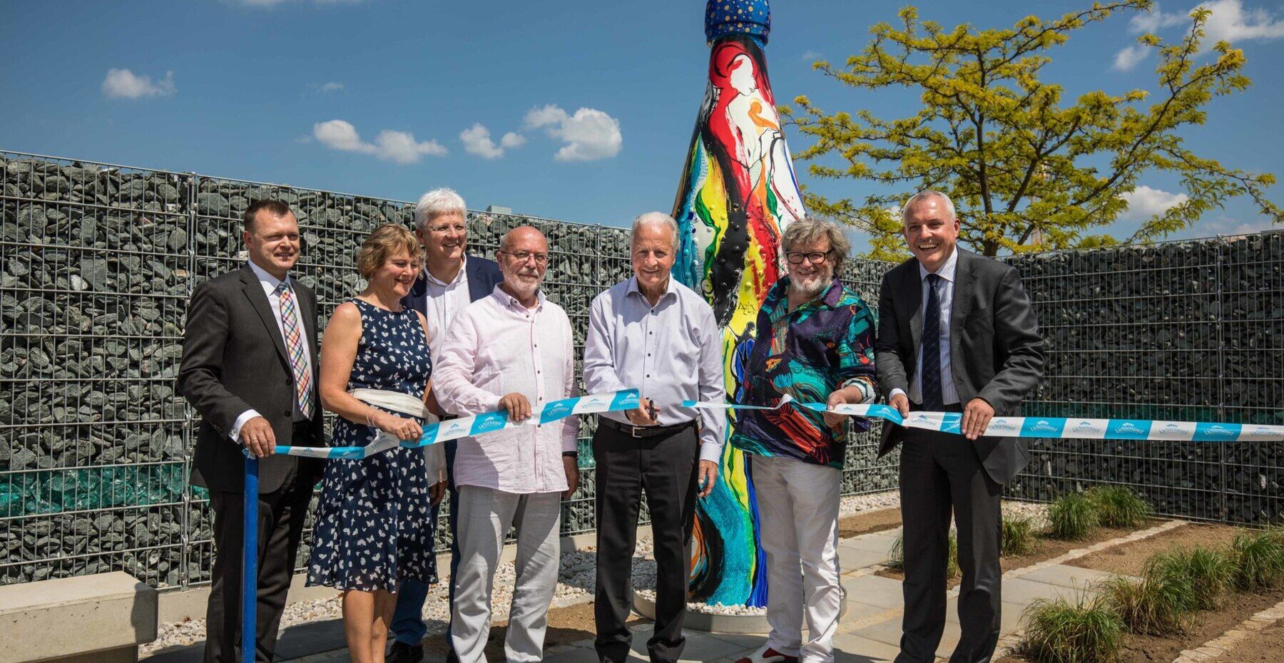 Mit der Einweihung der Kunstobjekte konnten die Lichtenauer Mineralquellen außerdem den neu gestalteten Einfahrtsbereich des Unternehmens seiner Bestimmung übergeben. Die Unternehmensvertreter der Lichtenauer Mineralquellen nutzten den Anlass, um den regionalen Dienstleistern und Bauunternehmen zu danken, die an der Errichtung des neuen Einfahrts- und Empfangsbereiches beteiligt waren. Zahlreiche Vertreter der einzelnen Gewerke bewunderten das neue Eingangsportal, welches bekanntlich die Visitenkarte und der erste Eindruck eines Unternehmens ist. „Zudem sind neue Zugangssysteme wie die elektrische Erfassung der eigenen Lastkraftwagen, eine elektronische Zutrittskontrolle für Mitarbeiter und der barrierefreie Zutritt bei der Projektierung des Objektes betrachtet worden. Ein weiteres Highlight ist der Schulungsraum für Besucher“, betonte der technische Betriebsleiter des Unternehmens, Uwe Grohmann. Dies alles dient den immer höheren Anforderungen von Gesetzgeber und Handel und letzten Endes einer noch höheren Produktsicherheit für die Endverbraucher.