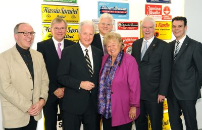 (v.l.n.r.) Dr. Klaus Neumeier (Pfarrer, Evangelische Christuskirchengemeinde Bad Vilbel), Willi Lahrmann (Vorsitzender Genossenschaft Deutscher Brunnen eG), Günter Hinkel (Seniorchef HassiaGruppe), Dirk Hinkel (Geschäftsführender Gesellschafter), Monika Hinkel, Jörg-Uwe Hahn (Justizminister Hessen und stellvertretender Ministerpräsident) und Dr. Thomas Stöhr (Bürgermeister Stadt Bad Vilbel)