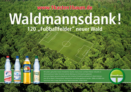 Im Zeitraum vom 1.September bis 31.Oktober floss für jeden gekauften Kasten der vier Marken hassia, Elisabethenquelle, bizzl und Bad Vilbeler UrQuelle eine Spende an den Verein PrimaKlima-weltweit e.V. und damit in Aufforstungsprojekte.