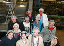 Hassia Besucherführer Karl Liebermeister zeigt den Teilnehmern, wie die Marken von Hassia in die Glas- und PET-Flaschen gelangen.An jedem vierten Donnerstag im April öffnen vor allem technische Unternehmen, Betriebe mit technischen Abteilungen und Ausbildungen, Hochschulen und Forschungszentren in ganz Deutschland ihre Türen für Schülerinnen ab der Klasse 5. Die Mädchen erleben z.B. in Laboren, Büros und Werkstätten wie interessant und spannend diese Arbeit sein kann. In Workshops und bei Aktionen gewinnen die Mädchen Einblick in die Praxis verschiedenster Bereiche der Arbeitswelt und erproben praktisch ihre Fähigkeiten im technischen Bereich. Sie erhalten direkte Antworten auf ihre Fragen und können erste Kontakte knüpfen.